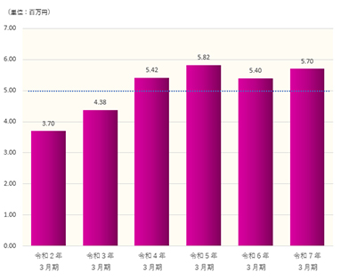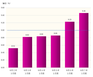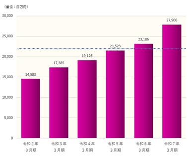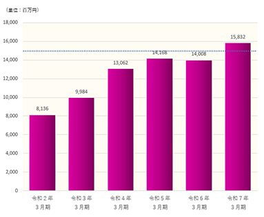 - ※各グラフの点線は、第5次経営計画の目標値(令和8年3月期)を示しています。